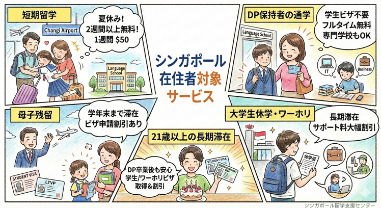 シンガポール在住邦人の皆さま・ご家族の皆さまに語学学校の入学手続きをお手伝いしています。