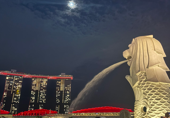 マリーナベイサンズの船底にはシンガポール国旗